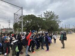 今、(17時)とまりんから真和志小に向けてバスで出発するところです