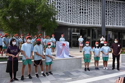 令和3年10月20日、久茂地小学校閉校記念碑の除幕式が那覇小学校6年生全児童参列のもと行われました。