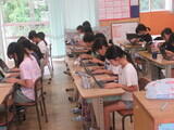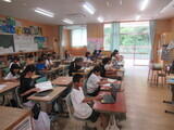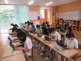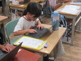 ・6月から7月にかけてタイピングの基本姿勢「ホームポジション」の指導やアルファベット入力とローマ字入力のトレーニングを行いました。