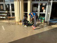 本日の作業は教室や特別教室、トイレなどの校舎内の清掃を