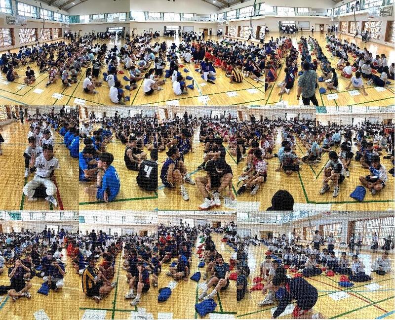 今年度、第3回の部活動キャプテン会を開催しました。部活動キャプテン会はふた月に一回程度、ノー部活動デーの水曜日の放課後に行っています。夏季中体連を経て、代替わりをした部活動もありましたが、集まったキャプテン達の表情を見ていると、学校活性化の一翼を担っているという意識の高さが伺えました。今回は「知って防ごう、熱中症」という内容で、これから夏本番を迎えるにあたり、「熱中症」がどのような状態を指すもので、その対処法と予防について、部活動主任からお話ししてもらいました。また、各部活動で気をつけることや自分たちにできる予防法などについても話し合いを持ち、意見をまとめました。「熱中症」について正しく知ることや防ぐ方法を自分事として考えることは、生徒の『危機回避能力』を育成することに繋がります。各顧問からもお話があると思いますが、キャプテンからの言葉は重みがあると考えます。これからの活動に向けて、今日のキャプテン会を生かして、安全で楽しい、充実した部活動にしてもらいたいと思います。