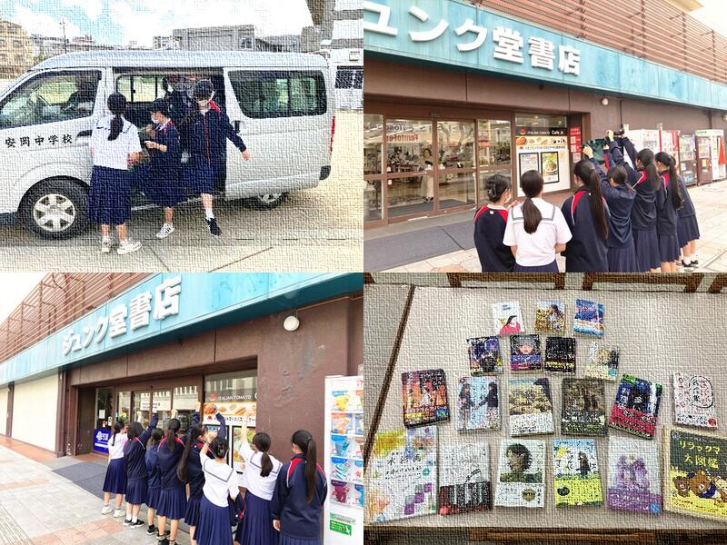 期間中、図書室は図書委員会や生徒のみなさんの力作で彩られています。各学級の代表が作成した、おすすめ本を紹介する「POP」は、カラフルなイラストや熱のこもった紹介文が並び、思わずその本を手に取りたくなるような魅力的な作品ばかりです。図書館入り口には、生徒のみなさんの「読書標語」がずらりと掲示されています。