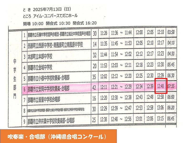 来週「第71回那覇地区中学校音楽発表会」が行われます。
