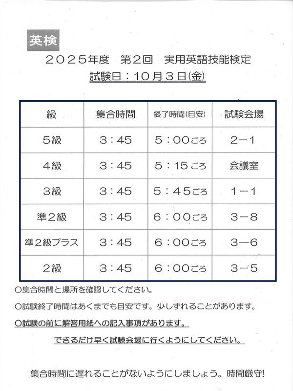 【令和7年10月2日(木)】★資格取得を目指して(明日、英語検定試験)