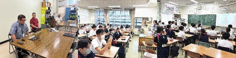 昨日、各学年とも夏休み明け最初の学年朝会を行いました。現在、本校は外壁工事のため、1階ピロティが活用できないので、3階ピロティ、体育館、オンライン配信で、場所を割り当てて行っています。1学年では「今年の夏休みの○○」のお題で、各担任がスピーチを行っていました。「この夏食べたおいしい食べ物」では、『宮古島産のマンゴー』をあげた担任は、「今まで食べたことのない味だった」と話していました。生徒にも質問をしながら、話が盛り上がっていました。2学年では、教育実習生と新職員の自己紹介を中心に行っていました。体育館だったので少し暑かったのですが、短時間・ひと学年だけだったので、なんとかしのぐことができました。実習生も新職員も少し緊張気味でしたが、生徒の温かな拍手で和んだ様子でした。3学年では、キャリア教育の一環で、先生方のこれまでの歩みの中で、印象に残った出来事などをスピーチしていました。ある先生は、中学生時代に県ジュニアスタディーに参加したことで、英語への興味・関心が高くなり、今の職業に繋がっていると話していました。どの学年も趣向を凝らした内容になっており、生徒の関心を引き出していました。