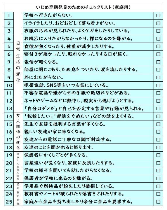 本校におきましても、1学期前半にSNSトラブルや犯罪の未然防止を目的とした「安全支援授業」や「教育相談週間」を実施するなど、継続していじめ防止に取り組んでおります。この強化月間を機に、改めて「学校・家庭・地域」が連携し、社会全体でいじめを許さないという意識を高め、いじめの未然防止、そして早期発見・早期対応に努めてまいりたいと考えております。
