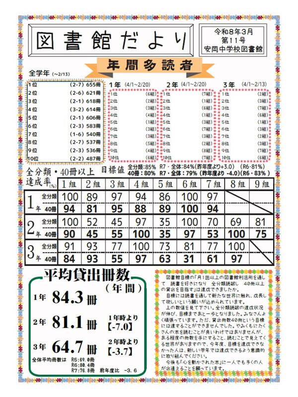【令和8年3月16日(月)】★読書は知の泉です(今年度の読書目標達成状況)