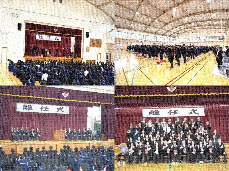 修了式後に行われた離任式では、28名の教職員が異動になることの紹介があり、お一人お一人から異動のあいさつがありました。そのどれもが、安岡中生徒のすばらしさや沖縄一の学校であること、今後もよりよき校風を築いてほしいとのお話がありました。多くの軌跡を残してくださった先生方に感謝いたします。次年度もその意思を引き継いで、新しい職員とともに頑張っていきます。本当にありがとうございました。