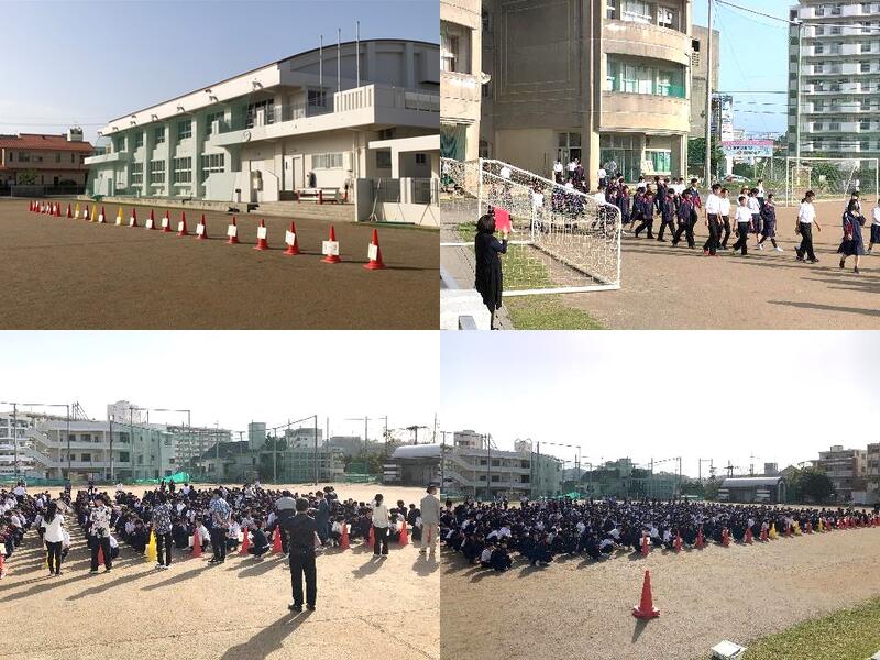 全校生徒が一堂に会しました(全体朝会/集合訓練)