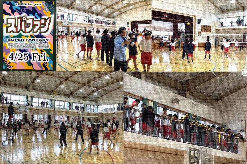 今年の2学年レクは『スパファン』と銘打って行いました。『スパファン』は「SUPER FANTASY」の略になっているようです。各学級対抗ソフトバレーボールで白熱した試合を展開していました。担任の先生方もチームに加わり、声をかけながらボールに飛び込んでいました。決勝戦の前にはハーフタイムということで、2学年の先生方全員で「きつねダンス」を披露し、さらなる盛り上がりを見せました。優勝の栄冠は2組さんがつかみ取りました。おめでとうございます。このレクをきっかけにさらに学級の団結が深まるといいですね。
