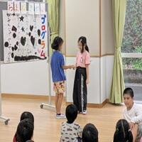 子どもたちは、言葉や衣服、食文化、遊びなどのお話を聞いたり、実際に体験したりしながら、楽しそうに学ぶ姿が見られました。英語での簡単なやりとりにも挑戦し、異なる文化に親しみをもつ良い機会となりました。