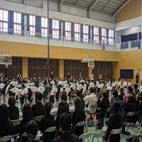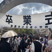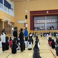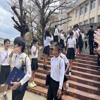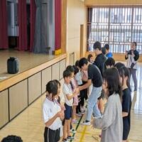 離任式後の花道では、先生との別れを惜しむように、見送る児童たちが次々と新たな花道を作り、最後には全校児童で先生を囲んで送り出しました。その様子からは、これまでの感謝の気持ちや強い絆が感じられ、心に残る感動的な時間となりました。