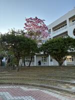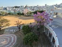 朝夕寒さは続いていますが、校内にも春の訪れが近づいてる気配が感じ取れます。サンプラザにある「モモイロ・イペー」の花が鮮やかに咲いています。2年4組・5組側の窓をピンク色に覆い生徒、先生方を癒してくれています。